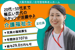 ≪大阪市旭区/介護福祉士/正社員≫月収例29万円◎年間休日107日!住宅型有料老人ホームで介護のお仕事です☆(osa)