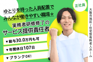 ≪大阪市旭区/サービス提供責任者(実務者研修修了)/正社員≫年間休日107日!月収例30万円◎働き方や悩みも相談できる♪住宅型有料老人ホームでのお仕事です☆(osa)