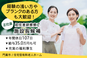 ≪門真市/施設長候補(初任者研修修了)/正社員≫月収例35万円◎年間休日107日!2022年10月オープン★住宅型有料老人ホームでのお仕事です☆(osa)
