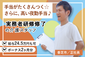 ≪香芝市/実務者研修修了/正社員≫賞与2ヶ月分♪月収例24.5万円◎サービス付き高齢者向け住宅でのお仕事です☆(kyo)
