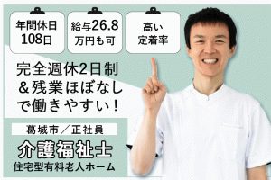 ≪葛城市/介護福祉士/正社員≫高い定着率★月収例26.8万円◎年間休日108日!住宅型有料老人ホームで介護のお仕事です☆