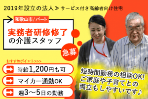 ≪和歌山市/実務者研修修了/パート≫夜勤なし♪週2日~OK♪4時間勤務~相談OK♪保育園完備♪職場見学OK◎サービス付き高齢者向け住宅でのお仕事です☆(wak)