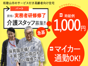 ≪和歌山市/実務者研修修了/パート≫夜勤なし♪週2日~OK♪4時間勤務~相談OK♪保育園完備♪職場見学OK◎サービス付き高齢者向け住宅でのお仕事です☆(wak)