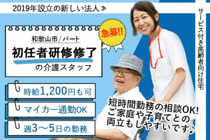 ≪和歌山市/初任者研修修了/パート≫週2日~OK♪4時間から相談できる♪保育園完備♪夜勤がない働き方♪社員登用あり◎サービス付き高齢者向け住宅でのお仕事です☆(wak)