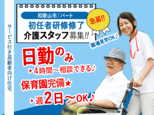 ≪和歌山市/初任者研修修了/パート≫週2日~OK♪4時間から相談できる♪保育園完備♪夜勤がない働き方♪社員登用あり◎サービス付き高齢者向け住宅でのお仕事です☆(wak)