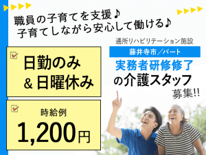 ≪藤井寺市/実務者研修修了/パート≫1日3時間~応相談◎日曜休み★日勤のみ!通所リハビリテーションでのお仕事です☆