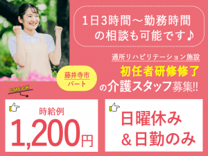 ≪藤井寺市/初任者研修修了/パート≫週3日以上で相談OK◎1日3時間~の日勤のお仕事◎日曜休み★通所リハビリテーションでのお仕事です☆