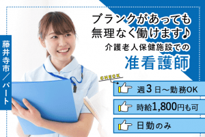 ≪藤井寺市/准看護師/パート≫週3日~勤務OK☆時給例1800円◎日勤のみ★老健でのお仕事です☆(osa)