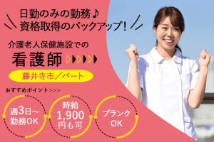 ≪藤井寺市/看護師/パート≫日勤のみ★週3日~勤務OK☆時給例1900円◎老健でのお仕事です☆(osa)