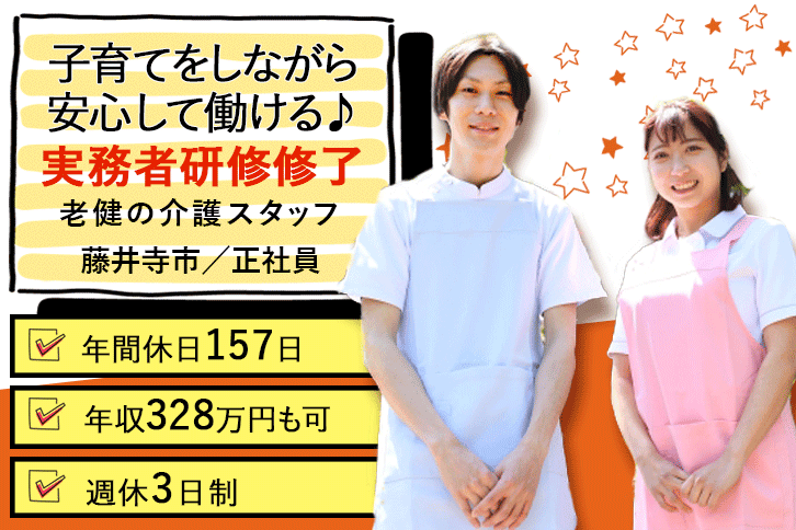 ≪藤井寺市/実務者研修修了/正社員≫年間休日157日★週休3日制!残業無しでプライベートも充実☆老健でのお仕事です☆(osa)