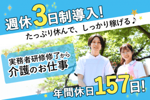 ≪藤井寺市/実務者研修修了/正社員≫年間休日157日★週休3日制!残業無しでプライベートも充実☆老健でのお仕事です☆(osa)