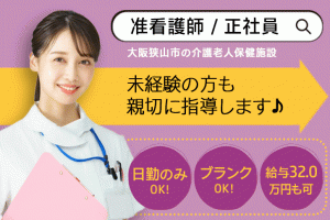 ≪大阪狭山市/准看護師/正社員≫月収例32.0万円♪日勤のみOK☆老健でのお仕事です☆(osa)