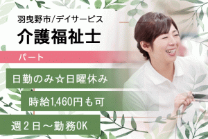 ≪羽曳野市/介護福祉士/パート≫日曜休み♪週2日~勤務OK☆時給例1460円◎日勤のみ★デイサービスでのお仕事です☆(osa)