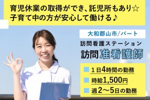 ≪大和郡山市/訪問准看護師/パート≫託児所あり◎時給例1500円♪週2~5日・4時間/日の勤務★訪問看護ステーションでのお仕事です★(kyo)