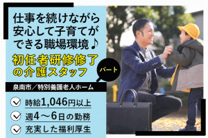 ≪泉南市/初任者研修修了/パート≫日勤★時給例1046円以上♪週4~6日勤務!特養でのお仕事です☆(osa)