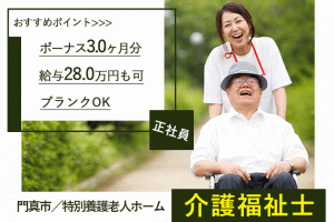 ≪門真市/介護福祉士/正社員≫月収例28.0万円◎賞与3.0ヶ月分★特養で介護のお仕事です☆(osa)
