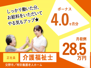 ≪交野市/介護福祉士/正社員≫月収例28.5万円◎賞与4.0ヶ月分★特養で介護のお仕事です☆(osa)