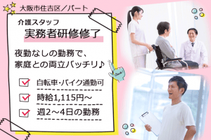 ≪大阪市住吉区/実務者研修修了/パート≫週2~4日の勤務!夜勤なし◎自転車・バイク通勤可★駅チカ徒歩5分♪有料老人ホームで介護のお仕事です☆