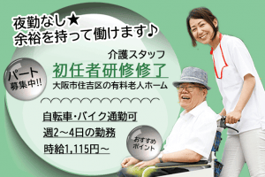 ≪大阪市住吉区/初任者研修修了/パート≫駅チカ徒歩5分★夜勤なし★残業無し★週2~4日の勤務★シフトの相談OK★有料老人ホームで介護のお仕事です☆(osa)
