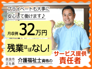 ≪奈良市/サービス提供責任者(介護福祉士)/正社員≫月収例32.0万円◆月9日休み◆退職金制度あり◆残業ほぼなし◆社内研修制度◆サービス付き高齢者向け住宅でのお仕事です☆(kyo)