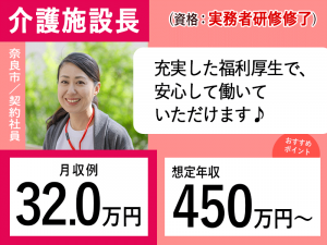 ≪奈良市/施設長(実務者研修修了) /契約社員≫★賞与あり◎希望休月3日あり◎通勤が楽!駅徒歩2分◎退職金制度あり★サービス付き高齢者向け住宅でのお仕事です☆(kyo)