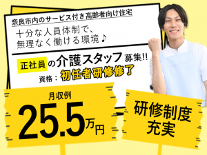 ≪奈良市/初任者研修修了/正社員≫◆月収例25.5万円◇研修制度充実◇月9日休み◆サービス付き高齢者向け住宅でのお仕事です☆(kyo)
