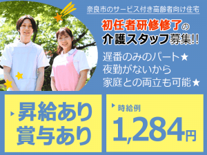 ≪奈良市/初任者研修修了/遅番パート≫★昇給賞与あり◎時給例1,280円◎夜勤なし遅番◎資格取得支援★サービス付き高齢者向け住宅でのお仕事です☆(kyo)