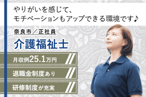 ≪奈良市/介護福祉士/正社員≫★月収例27.2万円◎退職金制度◎賞与あり◎研修制度充実★住宅型有料老人ホームでのお仕事です☆(kyo)
