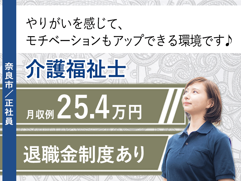 ≪奈良市/介護福祉士/正社員≫★月収例27.2万円◎退職金制度◎賞与あり◎研修制度充実★住宅型有料老人ホームでのお仕事です☆(kyo)