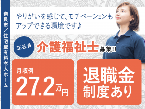 ≪奈良市/介護福祉士/正社員≫★月収例27.2万円◎退職金制度◎賞与あり◎研修制度充実★住宅型有料老人ホームでのお仕事です☆(kyo)