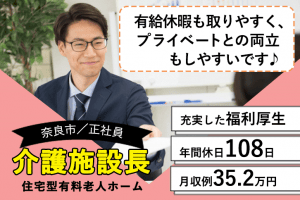 ≪奈良市/施設長(介護福祉士)/正社員≫★月収例34万円◎有給取りやすい◎月9日休★住宅型有料老人ホームでのお仕事です☆(kyo)
