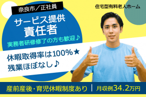 ≪奈良市/サービス提供責任者(介護福祉士)/正社員≫月収例32.0万円◆月9日休み◆退職金制度あり◆残業ほぼなし◆社内研修制度◆住宅型有料老人ホームでのお仕事です☆(kyo)