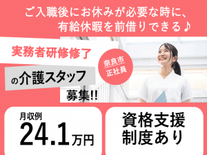 ≪奈良市/実務者研修修了/正社員≫★月収例26.2万円◎資格支援制度◎退職金制度◎賞与あり★住宅型有料老人ホームでのお仕事です☆(kyo)