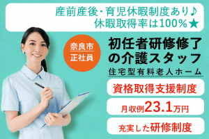 ≪奈良市/初任者研修修了/正社員≫★研修制度充実◎月収例25.5万円◎資格支援制度◎賞与あり★住宅型有料老人ホームでのお仕事です☆(kyo)