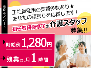 ≪奈良市/初任者研修修了/フルタイムパート≫時給例1,280円♪残業月1時間でプライベートも充実◎正社員登用実績多数★住宅型有料老人ホームでのお仕事です☆(kyo)