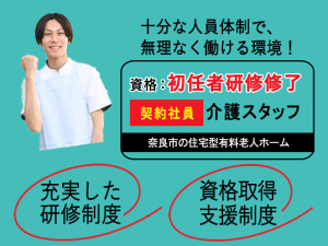 ≪奈良市/初任者研修修了/契約社員≫◆研修制度充実☆資格取得支援制度☆月収例25.5万円☆正社員登用制度◆住宅型有料老人ホームでのお仕事です☆(kyo)