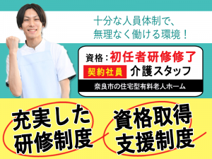 ≪奈良市/初任者研修修了/契約社員≫◆研修制度充実☆資格取得支援制度☆月収例25.5万円☆正社員登用制度◆住宅型有料老人ホームでのお仕事です☆(kyo)