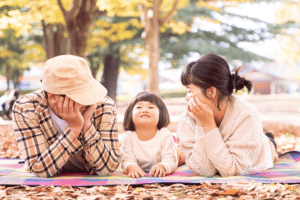 › 挿絵 保育 家族 母 子 父 秋 公園 休暇