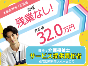 ≪堺市/サービス提供責任者(介護福祉士)/正社員≫月収例32.0万円◆月9日休み◆退職金制度あり◆残業ほぼなし◆社内研修制度◆住宅型有料老人ホームでのお仕事です☆(osa)