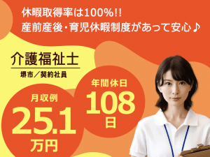 ≪堺市/介護福祉士/契約社員≫月収例27.2万円◆年間休日108日◆社内研修制度◆住宅型有料老人ホームでのお仕事です☆(osa)
