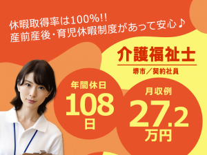 ≪堺市/介護福祉士/契約社員≫月収例27.2万円◆年間休日108日◆社内研修制度◆住宅型有料老人ホームでのお仕事です☆(osa)