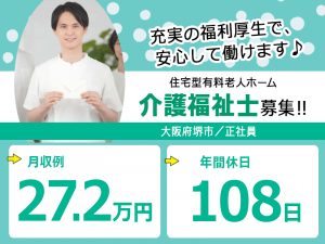 ≪堺市/介護福祉士/正社員≫月収例27.2万円◆年間休日108日◆社内研修制度◆住宅型有料老人ホームでのお仕事です☆(kyo)