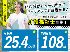 ≪堺市/介護福祉士/契約社員≫月収例27.2万円◆年間休日108日◆社内研修制度◆住宅型有料老人ホームでのお仕事です☆(osa)