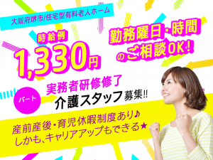 ≪堺市/実務者研修修了/パート≫時給例1,330円◆勤務曜日・時間のご相談OK◆正社員登用制度あり◆住宅型有料老人ホームでのお仕事です☆(kyo)