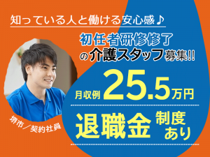 ≪堺市/初任者研修修了/契約社員≫月収例25.5万円◆実質無料で資格取得◆年間休日108日◆住宅型有料老人ホームでのお仕事です☆(osa)