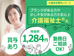 ≪交野市/介護福祉士/パート≫★時給例1,380円◎賞与あり◎勤務日相談可★サ高住でのお仕事です☆