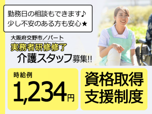 ≪交野市/実務者研修修了/パート≫★時給例1,330円◎資格取得支援制度◎勤務日相談可★サ高住でのお仕事です☆