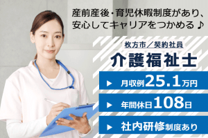 ≪枚方市/介護福祉士/契約社員≫月収例27.2万円◆年間休日108日◆社内研修制度◆住宅型有料老人ホームでのお仕事です☆(osa)