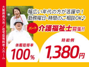 ≪枚方市/介護福祉士/パート≫時給1,380円◆勤務曜日・時間のご相談OK◆社内研修制度◆住宅型有料老人ホームでのお仕事です☆(osa)