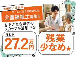 ≪大阪市/介護福祉士/正社員≫◆月収例27.2万円◎残業少なめ◎賞与2.0ヶ月分◎通勤手当上限なし◎マイカー通勤相談OK◎駅徒歩3分★サービス付き高齢者住宅でのお仕事です☆(osa)
